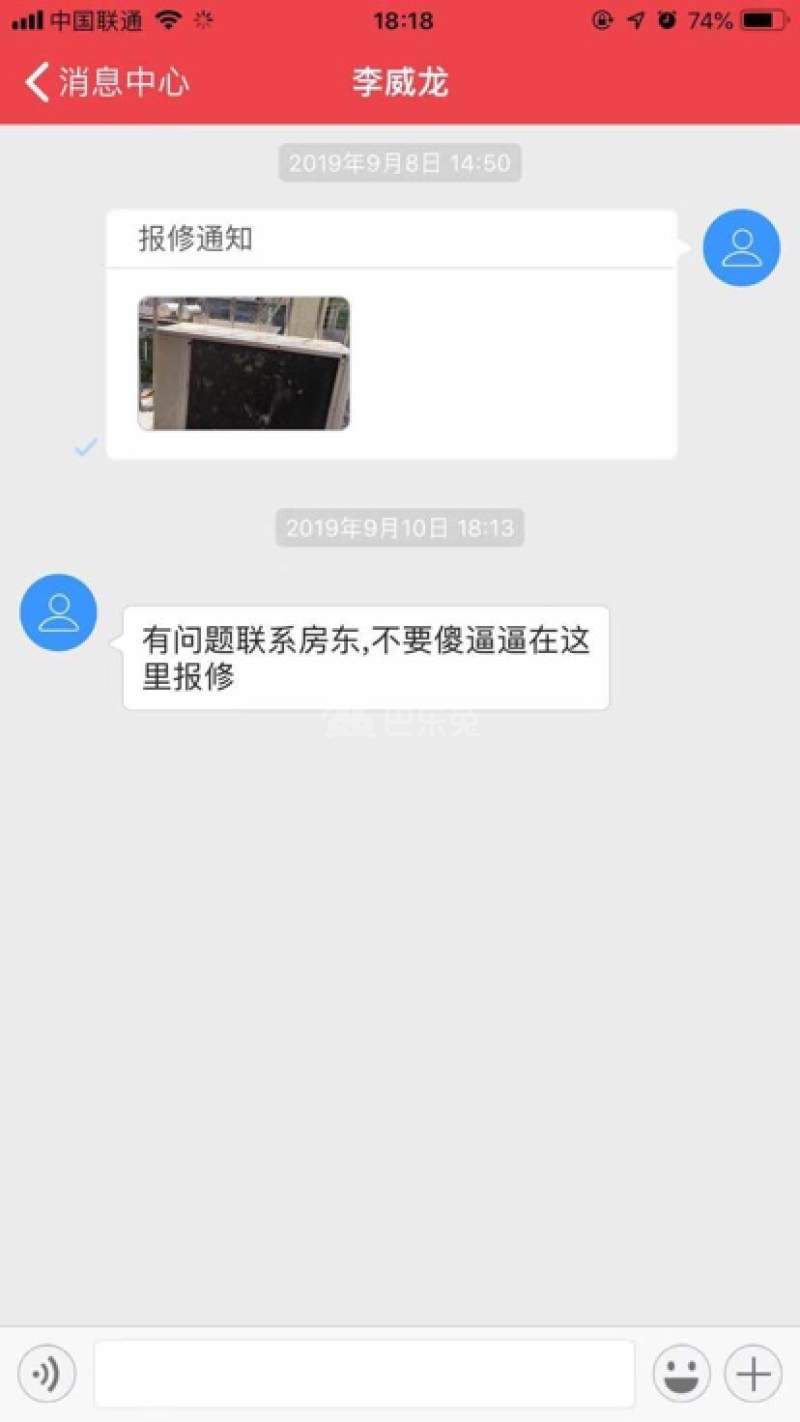 设施环境 : 微信找他报修一直没下文。然后在平台找他就是这态度 截图就是保修的态度